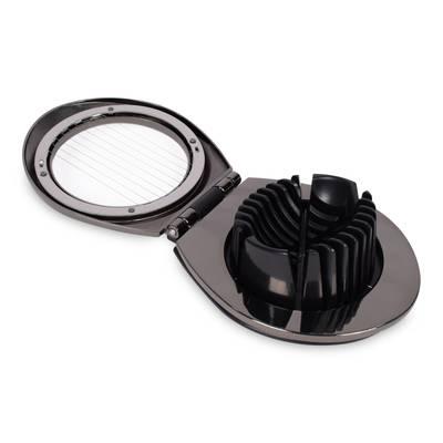 - double chamber design includes sections for cutting egg into crosswise slices or 6 even wedges.
